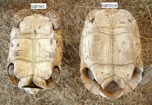Samec má ocas delší, ústní kloaky dále do jeho kořene. Plastrón je vypouklý dovnitř.